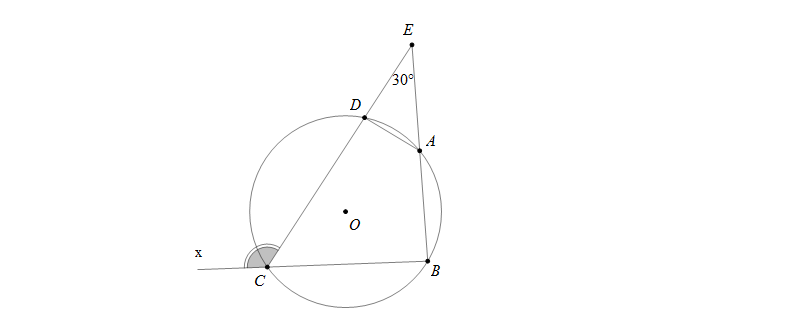 Tóm tắt lý thuyết 1. Khái niệm Định nghĩa: Một tứ giác có bốn đỉnh cùng nằm trên một đường tròn được gọi là tứ giác nội tiếp đường tròn (hay tứ giác nội tiếp) Chẳng hạn, tứ giác \(ABCD\) có bốn đỉnh \(A,B,C,D\) cùng nằm trên một đường tròn nên \(ABCD\) được gọi là tứ giác nội tiếp. 2. Định lí: Trong một tứ giác nội tiếp, tổng số đo hai góc đối nhau bằng 1800 \(ABCD\) là tứ giác nội tiếp nên ta có \(\widehat{A}+\widehat{C}=\widehat{B}+\widehat{D}=180^0\) 3. Định lí đảo: Nếu một tứ giác có tổng số đo hai góc đối nhau bằng 1800 thì tứ giác đó nội tiếp được đường tròn Cụ thể ở hình trên, nếu có \(\widehat{A}+\widehat{C}=180^0\) hoặc \(\widehat{B}+\widehat{D}=180^0\) thì tứ giác \(ABCD\) nội tiếp được đường tròn. Bài tập minh họa 1. Bài tập cơ bản Bài 1: Tính số đo các góc của tứ giác \(ABCD\) Hướng dẫn: Do \(ABCD\) là tứ giác nội tiếp nên ta có \(\widehat{A}+\widehat{C}=\widehat{B}+\widehat{D}=180^0\) Vì \(\widehat{B}=85^0\) nên \(\widehat{D}=180^0-85^0=95^0\) Ta có \(\widehat{A}+\widehat{C}=180^0\Leftrightarrow 2x+x=180^0\Leftrightarrow x=60^0\) Từ đó suy ra \(\widehat{A}=2.60^0=120^0,\widehat{C}=60^0\) Bài 2: Tính số đo các góc của tứ giác \(ABCD\), biết rằng \(\widehat{DCx}=130^0\) Hướng dẫn: Ta có \(\widehat{DCB}=180^0-\widehat{DCx}=180^0-130^0=50^0\), suy ra \(\widehat{DAB}=180^0-\widehat{DCB}=180^0-50^0=130^0\) Lại có \(\widehat{DCx}\) là góc ngoài của \(\bigtriangleup ECB\) nên \(\widehat{DCx}=\widehat{E}+\widehat{B}\Rightarrow \widehat{B}=\widehat{DCx}-\widehat{E}=130^0-30^0=100^0\) Từ đó suy ra \(\widehat{ADC}=180^0-\widehat{ABC}=180^0-100^0=80^0\) Bài 3: Tam giác \(ABC\) nội tiếp đường tròn \((O;R)\) có \(AB=8cm,AC=15cm\), đường cao \(AH=5cm\) (H nằm ngoài cạnh BC). Tính bán kính của đường tròn Hướng dẫn: Tứ giác \(ABCD\) nội tiếp nên \(\widehat{ABH}=\widehat{ADC}\) Xét hai tam giác vuông \(AHB\) và \(ACD\) có \(\widehat{ABH}=\widehat{ADC}\) nên \(\bigtriangleup AHB\sim\bigtriangleup ACD\) (g.g) suy ra \(\frac{AH}{AB}=\frac{AC}{AD}\Rightarrow AD=\frac{AB.AC}{AH}=\frac{8.15}{5}=24\Rightarrow R=\frac{AD}{2}=12\)(cm) 2. Bài tập nâng cao Bài 1: Dựa vào hình vẽ, tính các góc của tứ giác \(ABCD\) Hướng dẫn: Đặt \(\widehat{ABC}=x,\widehat{ADC}=y (x,y>0)\) thì ta có \(x+y=180\) (1) Ta có \(\widehat{ABC}=40^0+\widehat{BAF}\) và \(\widehat{ADC}=30^0+\widehat{DAF}\) suy ra \(\widehat{ABC}-\widehat{ADC}=10^0\) (vì \(\widehat{BAF}=\widehat{DAF}\)) hay \(x-y=10\)(2) Giải hệ phương trình (1) và (2) suy ra \(x=95,y=85\) hay \(\widehat{ABC}=95^0,\widehat{ADC}=85^0\) Lại có \(\widehat{DAB}=\widehat{F}+\widehat{ABF}=125^0\Rightarrow \widehat{BCD}=180^0-125^0=55^0\) Bài 2: Cho tam giác \(ABC\) vuông tại \(A,(AB a) \(CI\) là phân giác của \(\widehat{BCD}\) b) \(DA\) là tiếp tuyến của \((O)\). Hướng dẫn: a) Ta có \(\widehat{IDC}=90^0\) (góc nội tiếp chắn đường kính) Nên \(\widehat{BAC}=\widehat{BDC}=90^0\) suy ra tứ giác \(ABCD\) nội tiếp do đó \(\widehat{ACD}=\widehat{ABD}\) mà theo đề bài \(\widehat{ABD}=\widehat{ACB}\) nên \(\widehat{ACD}=\widehat{ACB}\) hay \(CI\) là phân giác của \(\widehat{BCD}\) (đpcm) b) Tứ giác \(ABCD\) nội tiếp nên \(\widehat{ADB}=\widehat{ACB}\) mà \(\widehat{ACD}=\widehat{ACB}\) nên \(\widehat{ADB}=\widehat{ACD}\) Từ đó suy ra \(DA\) là tiếp tuyến của \((O)\).