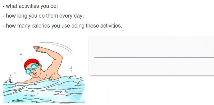 Bài 1 Task 1. Quickly read the text. Match the correct headings with the paragraphs (Đọc nhanh bài đọc. Nối những đề mục chính xác với những đoạn văn.) Hướng dẫn giải: 1. B Tạm dịch:Số lượng đúng: Người ta nên có từ 1600 đến 250C calo một ngày để giữ dáng. Thể thao và những hoạt động như đạp xe đạp và chạy bộ sử dụng nhiều calo. Ngủ và xem ti vi sử dụng ít calo hơn. Bạn có nghĩ mình đang ăn nhiều hơn hoặc ít hơn calo mà mình cần không? 2. A Tạm dịch:Calo là gì? Chúng ta cần calo hay năng lượng để làm những điều chúng ta làm hàng ngày: đi bộ, cưỡi xe đạp, và thậm chí là ngủ! Chúng ta nhận calo từ thức ăn chúng ta ăn. Nếu ăn quá nhiều, chúng ta có thể bị mập. Nếu không ăn đủ. chúng ta sẽ cảm thấy mệt và yếu ớt. 3. C Tạm dịch:Tầm nhìn của một chuyên gia Bác sĩ Dan Law là một chuyên gia ăn kiêng. Ông ấy biết chính xác con người cần ăn bao nhiêu, vì thế, nhiều người lắng nghe lời khuyên của ông ấy. Bí quyết calo của ông ấy là gì? Ăn ít thức ăn vặt, và đếm lượng calo của bạn nếu bạn trở nên mập. Bài 2 Task 2. Find the following words/phrases in the text. Discuss the meaning of each word/phrase with a partner. Then check the meaning (Tìm những từ/ cụm từ sau trong bài văn. Thảo luận ý nghĩa của mỗi từ/ cụm từ với bạn học. Sau đó kiểm tra ý nghĩa.) Hướng dẫn giải: - diet (n): the food that you eat on a daily basis. Tạm dịch:- chế độ ăn uống (n): thức ăn mà bạn ăn hàng ngày. - expert (n): someone who has studied a lot about a subject or topic and understand it well. Tạm dịch:chuyên gia (n): một người đã nghiên cứu rất nhiều về một chủ đề và hiểu rõ nó. - tip (n): an advice on how to do something quickly and successfully, usually from one’s own experience. Tạm dịch: mẹo (n): một lời khuyên về cách làm một điều gì đó nhanh chóng và thành công, thường là từ kinh nghiệm của chính mình - junk food (n): usually convenient food like Me Donald, KFC... Tạm dịch:đồ ăn vặt (n): thường là thức ăn tiện lợi như Mc Donald, KFC ... - stay in shape (n): be fit and healthy Tạm dịch:giữ dáng (n): vừa vặn và khỏe mạnh Bài 3 Task 3. Answer the following questions (Trả lời những câu hỏi sau.) Hướng dẫn giải: 1. A calorie is energy that helps do our everyday activities. Tạm dịch: Calo là gì? Calo là một dạng năng lượng giúp chúng ta thực hiện những hoạt động hàng ngày. 2. If we eat too many calories, we can get fat. Tạm dịch:Điều gì xảy ra khi chúng ta có quá nhiều calo? Nếu chúng ta ăn quá nhiều calo, chúng ta có thể bị béo phì. 3. To stay healthy, you need between 1,600 and 2,500 calories. Tạm dịch: Số lượng calo cần hàng ngày để khỏe mạnh là bao nhiêu? Để giữ cơ thể khỏe mạnh, bạn cần từ 1.600 đến 2.500 calo. 4. Sports activities and running use a lot of calories. Tạm dịch:Hoạt động nào sử dụng nhiều calo? Hoạt động thể thao và chạy bộ sử dụng nhiều calo. 5. People listen to his advice because he is a diet/ nutrition expert. Tạm dịch: Tại sao người ta lại nghe theo lời khuyên của bác sĩ Law? Người ta nghe theo lời khuyên của ông ấy bởi vì ồng ấy là một chuyền gia ăn kiêng / dinh dưỡng. Bài 4 Task 4. Look at the table and discuss the following questions (Nhìn vào bảng và thảo luận những câu hỏi sau.) Hướng dẫn giải: 1. - Because there are some activities that you have to do more than others and you will use calorie as energy to do them. Tạm dịch:Tại sao bạn lại nghĩ rằng vài hoạt động lại sử dụng nhiều calo hơn những hoạt động khác? - Bởi vì có vài hoạt động mà bạn phải làm nhiều hơn những hoạt động khác và bạn sẽ sử dụng calo như năng lượng để thực hiện chúng. 2. - Gardening Tạm dịch:Hoạt động nào sử dụng nhiều calo hơn: làm vườn hay đi dạo? - Làm vườn 3. - 660 calones Tạm dịch: Bạn sử dụng bao nhiêu calo để tập thể dục nhịp điệu trong 2 giờ? - 660 calo 4. - We will be tired and weak. Tạm dịch:Bạn nghĩ điều gì sẽ xảy ra nếu chúng ta có quá ít calo, nhưng chúng ta lại sử dụng quá nhiều? - Chúng ta sẽ thấy mệt và yếu ớt. Bài 5 Task 5. Choose two or three activities you like to do. Complete the table about those activities (Chọn 2 hay 3 hoạt động bạn thích làm. Hoàn thành bảng về những hoạt động đó.) Hướng dẫn giải: ActivityNumber of hour (per day)Total number of caloriesGardening1275Swimming41840Tạm dịch: Hoạt độngmỗi ngàyTổng số calo tiêu haoLàm vườn1275Bơi lội41840Bài 6 Task 6. Present your table to the class. Try to include the following information (Trình bày bảng của bạn cho cả lớp. Cố gắng bao gồm những thông tin sau:) Tạm dịch: - I usually do gardening at home. I do 4 times a week and 1 hour one time. I plant vegetables and flower in the garden. Each time, I use 275 calories to do. Tạm dịch: Tôi thường làm vườn ở nhà. Tôi làm 4 lần một tuần và một giờ một lần. Tôi trồng rau và hoa ở trong vườn. Mỗi lần, tôi sử dụng 275 calo để làm vườn.