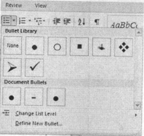 Tóm tắt lý thuyết 1. Khởi động Word Để mở ứng dụng Word, cách làm chuẩn mực là từ bảng chọn (menu) Start, chọn lệnh All Progranis/Microsoft Office/Microsoft Word 2010. Khi đó màn hình làm việc của ứng dụng Word hiện lên như trong hình 7.1. Còn có những cách khác để mở ứng dụng Word, như nháy đúp chuột vào biểu tượng Microsoft Word 2010 (nếu có) trên màn hình nền (Desktop); Hoặc thậm chí từ bảng chọn Start, chọn lệnh Microsoft Word 2010 (nếu có) trên danh sách các chương trình mới mở của bảng chọn Start. Hình 7.1. Màn hình làm việc của Word 2010 2. Giới thiệu màn hình làm việc của Word 2010 Thanh tiêu đề của cửa sồ Word 2010 hiển thị tên của tệp văn bản đang mở và tên chương trình Microsoft Word như hình 7.2. Nếu tệp tin đang mở được tạo ra bởi các phiên bản Word trước (ví dụ như Word 2003) thì sau tên tệp sẽ có thêm thông báo [Compatility Mode] như hình 7.2. Cụm từ “Compatility Mode” ngụ ý tệp văn bản dang được mở ở chế độ tương thích với phiên bản cũ. Cuối cùng, như mọi cửa sổ ứng dụng khác, phía ngoài cùng bên phái của thanh tiêu đề là ba nút lệnh: (1) Cực tiểu (Minimize) để thu nhỏ cửa sổ về thanh Taskbar; (2) Cực đại cửa sổ (Maximize) hoặc khôi phục cửa sổ (Restore down) về trạng thái trước đó; (3) Close để đóng cửa sổ đang mờ. Hình 7.2. Thanh tiêu đề trong cửa sổ Word 2010 Thành công cụ Quick Access nằm ở góc trên bên trái cung cấp cách thực thi dễ dàng và nhanh một số lệnh cơ bản đối với tập tin. Mặc định, thanh công cụ Quick Access gồm có lệnh Save, Undo, Redo. Nháy chuột vào mùi tên trợ xuống ở phía cuối thanh công cụ để thêm hoặc bớt các lệnh. Hệ thống bảng chọn của Word 2010 được trình bày theo kiểu ribbon (được hiểu là một “dải” lệnh). Với thanh Ribbon, các lệnh thường dùng trong các thé sẽ được “phơi” ra trên “dái” lệnh thay vì được giấu trong các bang chọn nhiều tầng như các phiên bản Word 2003 trờ về trước. Mặc định, trên thanh Ribbon bao gồm các thẻ File, Home, Insert, Page Layout, References, Mailings, Review, View. Hình 7.3. Enhanced Screen Tip mô tả hiểu tượng đánh dấu đầu dòng (Bullets) Mỗi thẻ lại được chia thành các nhóm lệnh theo chủ đề. Ví dụ: thẻ Home chứa nhóm các lệnh thường gặp như Clipboard. Font, Paragraph. Styles, Editing. Khi đưa chuột tới một nút lệnh trên thanh Ribbon sẽ xuất hiện một hướng dẫn tăng cường (Enhanced Screen Tip) mô tả về biểu lượng này. Hình 7.4. Dialog Box Launcher và hộp thoại Paragraph Dialog Box Launcher: Nhiều nhóm trên thanh ribbon có một biểu tượng mũi tên nhỏ ở góc dưới bên phải. Microsoft gọi đây là Dialog Box Launcher. Khi nháy chuột vào biểu tượng này để mở ra một hộp thoại tương ứng với nhóm lệnh đó. Ví dụ: nháy vào biểu tượng Dialog Box Launcher trong nhóm lệnh Paragraph để mở hộp thoại Paragraph như hình 7.4. Galarv: Một số nút lệnh trên thanh Ribbon có mùi tên nhỏ trở xuống bên cạnh. Mùi tên này mang thông điệp vẫn còn nhiều lựa chọn khác. Nếu nháy chuột vào mũi tên thấy xuất hiện một danh sách các lựa chọn. Khi muốn đóng danh sách, nháy chuột lại tại mũi tên. Hình 7.5 hiển thị danh sách các lựa chọn đánh dấu đầu dòng khi nháy chuột vào mùi tên tại nút lệnh Bullets. Thanh trạng thái (Status Bar): Nằm phía cuối màn hình cho biết đang ở trang nào, có bao nhiêu từ trong tệp tin. Thanh trạng thái có thể tuỳ chỉnh bằng cách nháy chuột phải tại vị trí bất kì trên thanh trạng thái, khi thấy xuất hiện một bằng danh sách các lựa chọn như trong hình 7.6. Nháy chuột vào lựa chọn đang có đánh dấu để tẳt chức năng tương ứng hoặc nháy chuột vào lựa chọn không có đánh dấu để bật chức năng tương ứng. Hình 7.5. Danh sách các lựa chọn đánh dấu đầu dòng Hình 7.6. Danh sách các lựa chọn trên thanh trạng thái 3. Chọn lệnh trên thanh Ribbon bằng sử dụng phím Việc sử dụng phím để chọn lệnh trên thanh Ribbon có thể thay cho sử dụng chuột. Các bước thực hiện như sau: Bước 1: Chọn đối tượng chịu tác động của lệnh sẽ chọn như chữ, đoạn, ô,... Bước 2: Nhấn phím Alt trên bàn phím để chuyển từ chế độ nhập dữ liệu sang chế độ dùng phím để chọn lệnh trên thanh Ribbon. Khi đó xuất hiện các kí tự và các chữ số trên thanh Ribbon và thanh công cụ Quick Access. Các chữ số và các chữ cái này được gọi là các Key Tip. Bước 3: Nhấn một kí tự để chọn một thẻ lệnh tương ứng. Ví dụ: nhấn chữ N đê chọn thẻ lệnh Insert. Khi đó, trên thanh Ribbon xuất hiện nhóm các lệnh trong thẻ Insert cùng các Key Tip tương ứng tại mỗi lệnh. Bước 4: Nhấn một kí tự hoặc một nhóm kí tự để chọn một lệnh, lệnh được chọn tác động trên đối tượng đã chọn ở bước 1. Nhan phím Esc để đưa bàn phím trờ lại ưạng thái ờ bước ngay trước đó. Hình 7.7. Kí tự và số xuất hiện khi nhấn phím Alt Hình 7.8. Các kí tự, nhóm kí tự đại diện trong thẻ Insert Với cách chọn lệnh bằng sử dụng phím như ưên, không cần ghi n