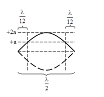 Câu 81: Trên sợi dây căng ngang, hai đầu cố định có sóng dừng với tần số dao động là 5 Hz. Biên độ của điểm bụng là 2 cm. Ta thấy khoảng cách giữa hai điểm trong một bó sóng có cùng biên độ 1 cm là 10 cm. Tốc độ truyền sóng trên dây là A. 1,2 m/s B. 1,8 m/s C. 2 m/s D. 1,5 m/s Spoiler: Xem đáp án Đáp án đúng: D + Biên độ dao động tại điểm cách nút một đoạn d được xác định bởi \({a_M} = 2{\rm{a}}\left| {\sin \frac{{2\pi d}}{\lambda }} \right|\) với 2a là biên độ của điểm bụng ⇒ điểm dao động với biên độ a sẽ cách bụng một khoảng \(\frac{\lambda }{{12}}\) Ta có : \(\frac{\lambda }{2} - \left( {\frac{\lambda }{{12}} + \frac{\lambda }{{12}}} \right) = 10 \Rightarrow \lambda = 30cm\) Tốc độ truyền sóng trên dây \(v = \lambda f = 30.5 = 150\) cm/s